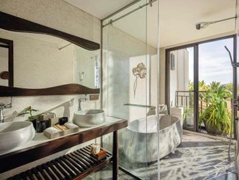 Шикарный отель, ухоженная зеленая территория, бухта , где белоснежный песок и нет волн. Внимательный персонал. Душ и ванна-чаша под открытым небом выше всяких похвал. Самые наилучшие впечатления. Из минусов - подушки совсем не удобные, хотя они какие-то не простые и в номере лежала информация по ним, но очень на любителя . И я бы меньше зажаривала на гриле морепродукты , но это тоже на любителя