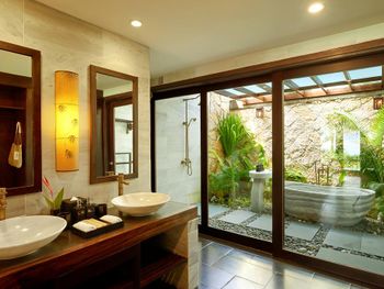 Шикарный отель, ухоженная зеленая территория, бухта , где белоснежный песок и нет волн. Внимательный персонал. Душ и ванна-чаша под открытым небом выше всяких похвал. Самые наилучшие впечатления.