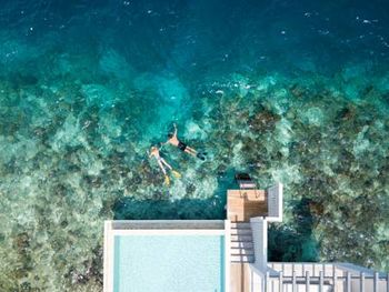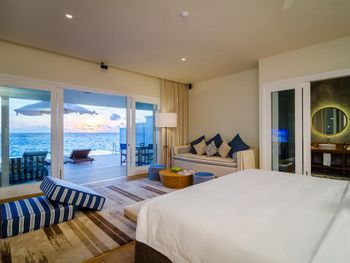 Мы жили на Reef Villa: очень большой номер, который оснащён всем необходимым; огромная веранда с бассейном; ощущение уединенности (соседей совсем не видно и не слышно); вилла находится на самой лучшей части рифа на всем резорте (именно на нашем рифе мы ежедневно смотрели разных рыб, иногда попадались маленькие акулы и черепахи, рядом с виллой находится достопримечательность - Blue Whole, куда иногда привозят туристов); в номере убираются 2 раза в день и на ночь приносят мини десерты. У всех гостей есть свой личный батлер, который в любое время отвечает на все вопросы, приезжает за вами на багги и помогает в любой ситуации. Завтраки были достаточно разнообразные: было много свежевыжатых соков, достаточно фруктов, большое меню с блюдами из яиц, отель большое внимание уделяет правильному питанию, поэтому можно найти молоко растительного происхождения, безглютеновую выпечку и т.д. Много ресторанов, где можно поужинать (нельзя сказать, что кухня шедевральная, но вкусно) наши любимые - Feeling Koi и Joe\'s Pizza (ну очень вкусная пицца, я в Италии её ел не так часто)) В целом остров большой, есть ежедневные активности (водные виды спорта, йога и т.д), не смотря на то, что курорт большой, всегда присутствует ощущение уединенности, очень красиво, чисто и комфортно. Персонал хорошо обучен и всегда готов помочь.