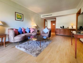 "Улучшенный стандарт" - затхлый запах старой мебели, света недостаточно, чтобы почитать книгу. Кровать сверхжесткая. Сейф маленький на батарейках, которые сели. Душ неудобный, горячей воды нет, максимум днем она комнатной температуры. Не докладывают полотенца, не следят за наличием чая, кофе и ванными принадлежностями. Полотенца и халаты старые. В Garden cafe поют до 23:00 (солнце садится уже в 18 часов). Балкон без перегородок.