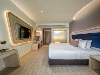 Все началось с ресепшена, у меня был поломан телефон и я не могла оставить залог на данную проблему у меня ушло полдня! Когда меня заселили в номер, То номер изначально был грязный и прилегающая терраса тоже на которой стояла два шезлонга, то есть что-то было разлито, волосы…. Номер уставший, Ещё из минусов постоянно сырая постель. Завтраки это отдельная история, если вы любите поспать и приходите за час до закрытия, то обращаться будет с вами мягко говоря некорректно, то есть если вы попросите обновить тарелку с арбузом, они её заберут и всё… и очень хамские смотрят обсуждают тебя видно что с недовольными лицами говорят, что плохое и потом смеются! Сервис оставляет желать лучшего!