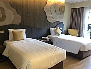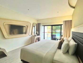 В целом немного напоминает концепцию турецких отелей,удобно что пляж -свой,завтраки на 3-ку.хорошие зоны бассейнов у детского клуба.в принципе там и туссовались все время.уборка хорошая для Тая.
