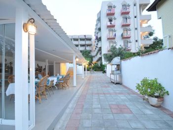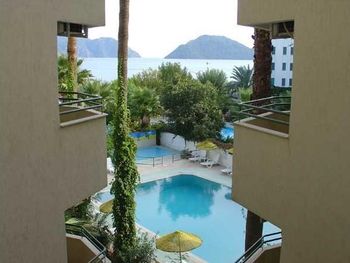 Отель как будто из 90х годов, все очень очень старое, мебель, розетки, оснащение и тд. Вы когда-нибудь видели чтобы пульт от тв и кондиционера выдавался на стойке регистрации (ресепшен громко сказано). Вот я это увидела тут, в этом отеле. В целом ощущение запустения, атмосфера 90х, мягко говоря не советую. Мы попали в Мармарис на праздники, было очень мало свободных отелей по адекватным ценам. Поэтому попали сюда, приглянулся собственный пляж и вид на море. Пляж дикоe разочарование - дно илистое, как только заходишь поднимает все наверх и вода становится мутной. Кстати пляжных полотенец нет, запаситесь своими.