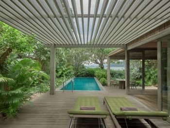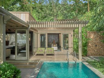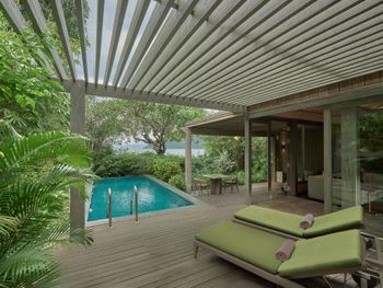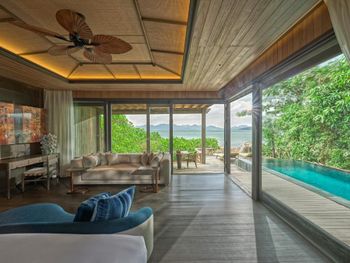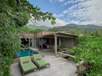 Замечательная концепция для отдыха когда вокруг никого нет. Детей туда не пускают, тагил отсеивается ценой. Тишина и покой. Лучше всего брать Treetop виллу: они находятся на склоне, на приличном расстоянии друг от друга. Оттуда прекрасные виды на море и горы, и совсем не видно соседей. Отлично работает вай-фай, для ценителей есть телевизор. Бассейн на вилле проточный, всегда чистый и прохладный. Кровать очень удобная. Кондиционеры работают как надо. Есть минибар с баночными напитками и 4 бутылки вина. Еду и напитки можно также заказать из местного ресторана. Кстати, выбор алкоголя в ресторане довольно скудный. Так что любителям вкусного лучше привезти это вкусное с собой (хоть администрация это и не приветствует). Завтрак в ресторане хороший: большой выбор всякого, горячее, свежевыжатые соки, не плохой кофе.