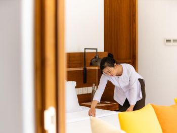 Уборка 2 раза в день, на 4.5 из 5, чисто но без излишеств. Каждый день меняют полотенца. ставят питьевую воду и конфетки или фрукты.