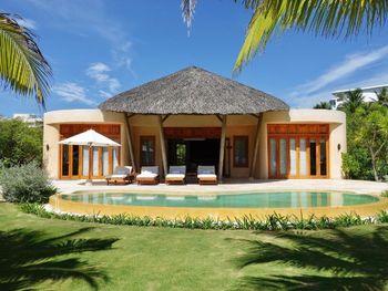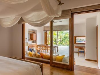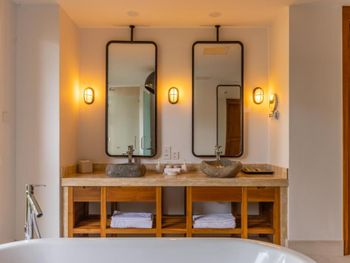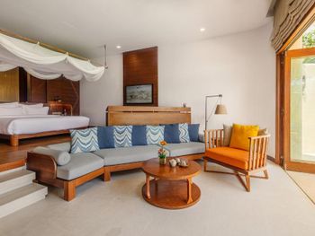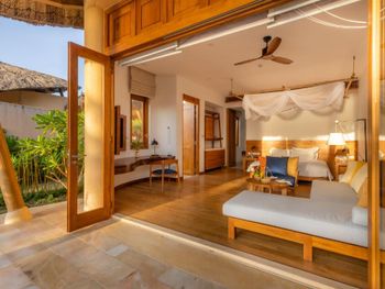 Большая вилла очень удобная, расположена рядом с морем, хорошая территория, 2 спальни расположены в отдельных маленьких виллах.