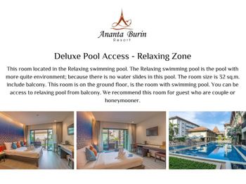 All rooms at Ananta Burin Resort come with a 36" LCD flat-screen TV, a safety deposit box, and a minibar. Guests can enjoy pool and garden views from the balcony's sitting area. The private bathroom includes a bathtub and a separate shower.
