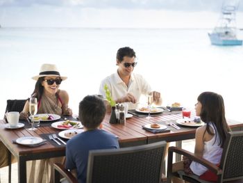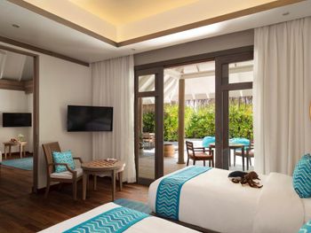 Близость к аэропорту. Отличный сервис. Русскоговорящие сотрудники и гестрелейшн. Могу высоко оценить сервис предоставляемый Марией ( гестрелейшн ). Отличный номерной фонд. Клининг номеров без претензий. Детское меню на резорте бесплатно. При бронировании питания полупансион, вы можете посещать любой Аля карт ресторан ( 3 блюда с человека вам зачтут бесплатно ). Велосипеды для взрослых и детей. Детский беби клуб. Территория отеля соединена ( 5 мин регулярно курсирующий катер ) с отелем anantara dhigu посещение с детьми только после 18. Можно съездить в аля карт или на прогулку. P.S самое главное для меня, что в сети отелей Anantara большое внимание уделяется гостям с пищевой аллергией и всегда в меню можно найти выпечку без яйца, молочных продуктов, глютен фри И так далее, за это отелю большое спасибо.