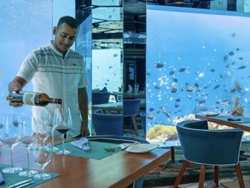 Безумно понравилась вилла на воде.Огромная ванная комната.В ресторанах было очень вкусно.А вот подводный ресторан своей кухней разочаровал(порадовал только суп),хотя в этом ресторане главное не еда а то что за стеклом,а точнее морские обитатели)