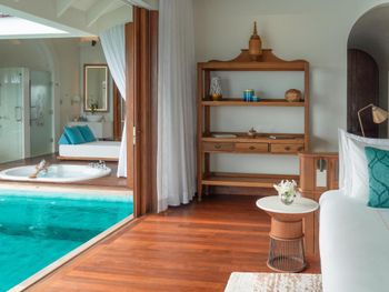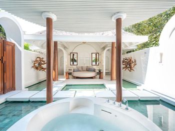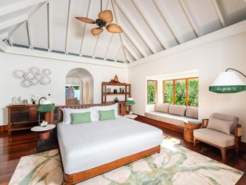 Гости могут выбрать одну из нескольких просторных вилл и резиденций с бассейном, построенных над кристально чистой водой или на нетронутом участке девственного пляжа. Все виллы обставлены изысканной деревянной мебелью. В распоряжении постояльцев хлопчатобумажное постельное белье премиум-класса, кондиционер, большая ванна, обеденный павильон на открытом воздухе и развлекательная система с телевизором с плоским экраном, док-станцией для iPod и DVD-плеером. Кроме того, на виллах установлены холодильник для вина, кофемашина для приготовления эспрессо и полностью укомплектованный мини-бар. Гостям каждой уединенной виллы с выходом к пляжу и океану предоставляются iPad, обеспечивающий доступ к персонализированным услугам консьержа, а также круглосуточные услуги закрепленного за виллой менеджера.
