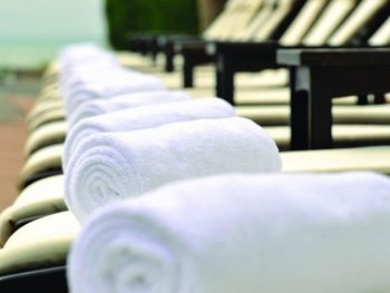 Очень мало лежаков у бассейна, чтобы получить место надо вставать в 7 утра и занимать места, в 7.15 на пляже уже свободных мест нет