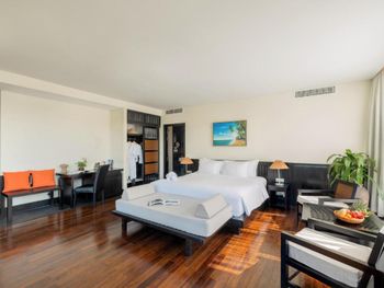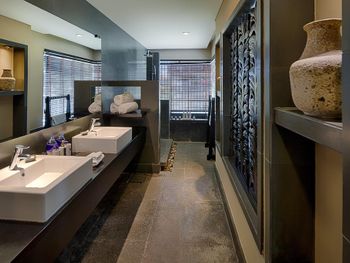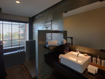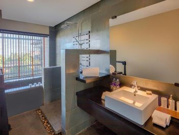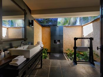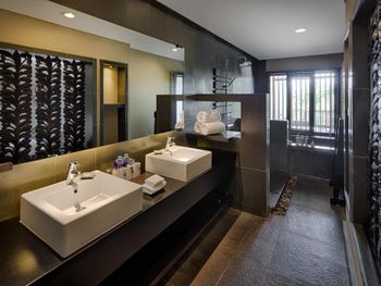 Номера располагают большим выбором подушек, сейфом, мини-баром, тропическим душем и очень просторной ванной, отделанной камнем.