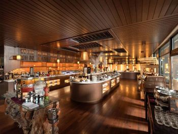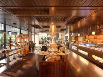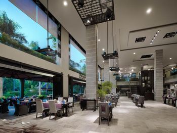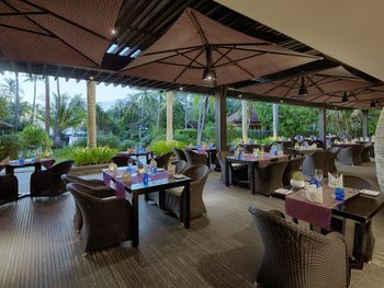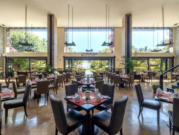 В ресторане курортного отеля можно заказать блюда местной кухни и полюбоваться прекрасным видом на море. По просьбе гостей могут быть приготовлены специальные блюда.