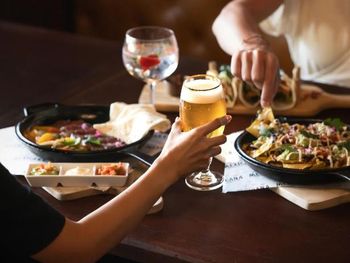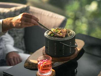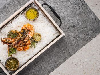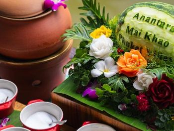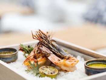 Для гостей сервируется завтрак «шведский стол», континентальный завтрак и полный английский/ирландский завтрак. При Anantara Mai Khao Phuket Villas работает ресторан, где подают блюда индийской кухни, блюда японской кухни и морепродукты. Гости могут попросить приготовить вегетарианские, халяльные и веганские блюда.
