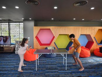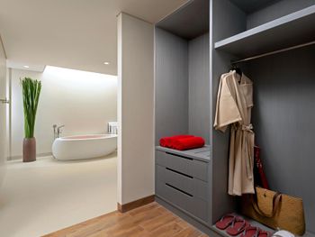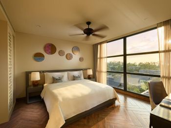Для такого уровня отеля было бы здорово давать тапочки и пляжные сумки без дополнительной платы. Каналов на русском языке мало, подключить к YouTube на тв не удавалось, стоят ограничения какие-то (не критично, но было бы удобнее, если был бы подключен гостевой аккаунт для просмотра, чтобы включить мультик для ребенка). Два дня не клали полотенца для бассейна, вероятно забывали и мы ловили персонал, чтобы взять пару полотенец. Вместе с гелем для стирки было бы здорово класть кондиционер (мы сами купили гель и кондиционер, с ребенком было много стирки), не проблема конечно купить самим, но лишний раз идти для этого в магазин придется. На завтраках места мало, в пиковые часы это особенно чувствуется, когда ты не можешь сесть за любой свободный стол, тебя ведут почему-то в другой зал (где кофе-зона со сладостями), хотя были столы пару раз в основном, один раз мы настояли сесть в основном, но пришлось персонал прям довести до стола и показать, что он не занят. Непонятно для чего это делается, в любом случае же должны сесть все гости, дайте им возможность сесть за свободный любой стол и не торговаться с гостями. Пляжная зона не оборудована, были два больших лежака, которые с навесом, но один был сломан, навес не держится совсем. Рядом нет душа или хотя бы чаши с водой, чтобы помыть после песка ноги, нас провожали в зону другого отеля (если я не ошибаюсь, то Marriott). Велосипеды дают в день на 4 часа, потом за каждый час доплата 1 час, хотя велопарк большой. Нам хватало всегда меньше 4 часов, но если посмотреть статистику, то думаю, что можно сделать эту услугу бесплатной и дать возможность гостям оставлять велосипед и номера просто. Вроде мелочь, но каждая деталь в отеле такого уровня важна. И велопарк подуставший, на некоторых велосипедах очень плохо тормоза работают.