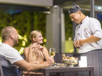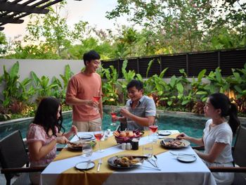 В ресторане Taurus подают блюда итальянской кухни и пиццы, приготовленные в дровяной печи, а также разнообразные блюда восточной и западной кухни. По запросу для гостей организуют приватный ужин с барбекю. В курортном отеле также работает ресторан Dining by Design, где гостям предложат незабываемое кулинарное путешествие.
