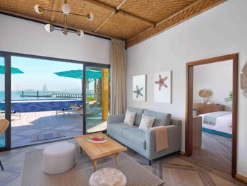 Отель новый открыт в декабре 2021. Отель находиться на архипелаге Мир, 15 минут на лодке от Пальмы. Я проживал до этого в Bulgari и попросил, чтобы меня забрали с этой марины, что сделали без проблем ровно в назначенное время. По прибытию нам назначили консьержа Sayyeda который 24 часа был на связи и старался выполнить все наши просьбы. Я бронировал номер с красивым видом на Дубай (Бурдж-Халиф). Номер просторный 90 квадратов. До моря из номера нужно сделать 5 шагов. На территории находиться два ресторана и бар. Один ресторан работает весь день, второй только на ужин. Есть спортзал и теннисный корт. Можно взять лодку на прокат для водных прогулок вокруг острова. Есть кинотеатр на пляже. Отлично подходит от 3 до 5 дней. Огромное спасибо Sayyed!!!
