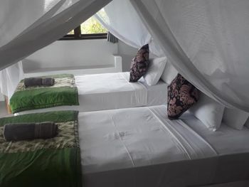 Жили на вилле с 3 кроватями, все новое после ремонта, аккуратно, приятно. Просторно. Была кухня, с плитой, комбайном, чайником, с молотым кофе. Еда в основном местная. Сотрудники отзывчивые, приятные.