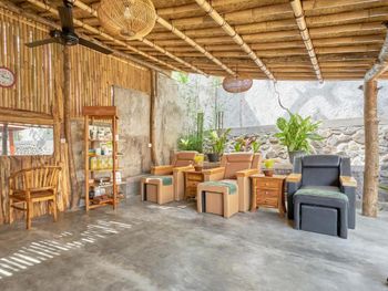 Прекрасный хозяин, отлично владеющий английским, который нашёл решение в очень непростой для обеих сторон ситуации. Очень вкусные завтраки в любое время, даже в обеденное. Соки из фруктов потрясающие! Красивые виды на пальмы и океан. Просторный номер. В ванной есть душ, не только ванная. Кровать не мягкая, но удобная. Есть просторная терраса и кухня на улице. Питьевая вода тоже в наличии в достаточном количестве. То, что нужно немного пройти до пляжа меня не тревожило. Нужно быть осторожным, но скутеры быстро не ездят.