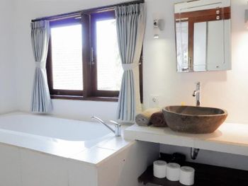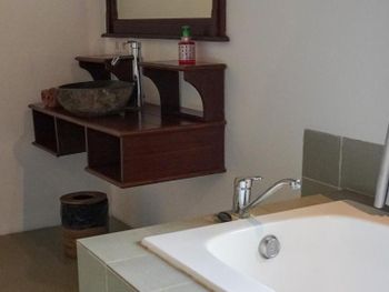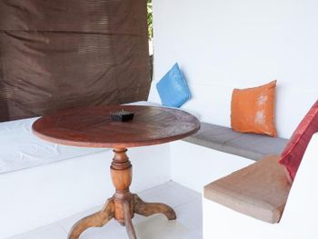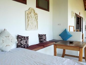 Прекрасный хозяин, отлично владеющий английским, который нашёл решение в очень непростой для обеих сторон ситуации. Очень вкусные завтраки в любое время, даже в обеденное. Соки из фруктов потрясающие! Красивые виды на пальмы и океан. Просторный номер. В ванной есть душ, не только ванная. Кровать не мягкая, но удобная. Есть просторная терраса и кухня на улице. Питьевая вода тоже в наличии в достаточном количестве. То, что нужно немного пройти до пляжа меня не тревожило. Нужно быть осторожным, но скутеры быстро не ездят.