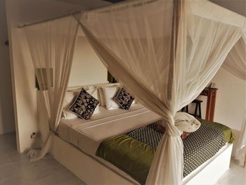 В реальности все немного более уставшее чем на фото. Постельное белье имеет запах стирального порошка. Балдахин над кроватью можно уже постирать :)