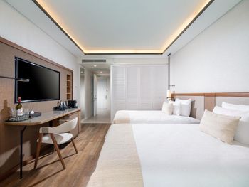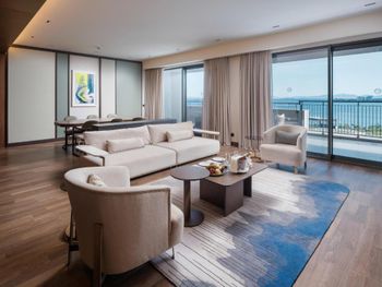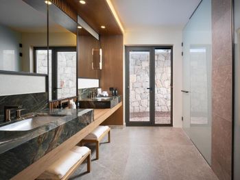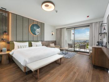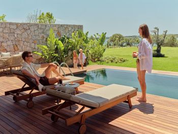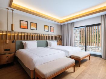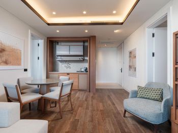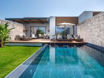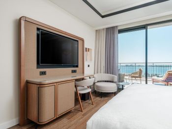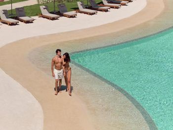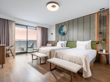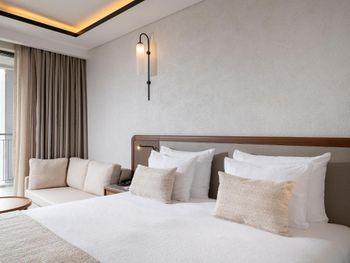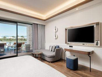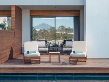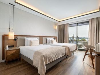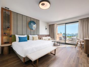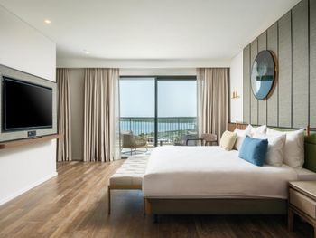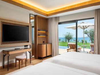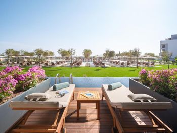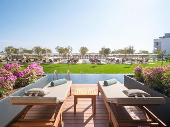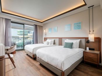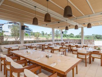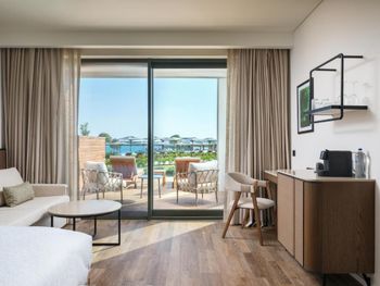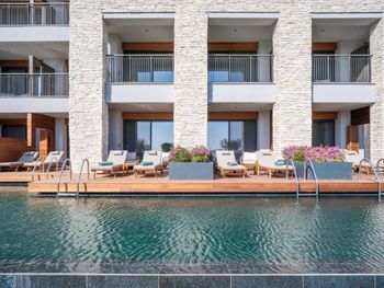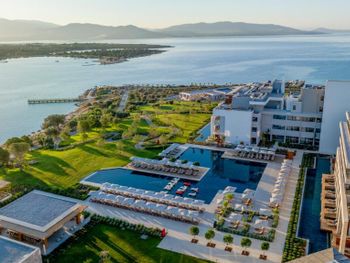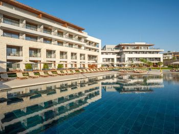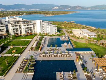 Отель оставил очень неоднозначное впечатление. Стоимость более 500 евро в сутки за двоих в самом начале сезона давала основание предположить, что это отель премиум класса. Впечатление было омрачено на подъезде, т.к дорога с трассы до отеля сильно замусорена. При бронировании выбрали территорию только для взрослых и с видом на море. Красивый вид был омрачён тем, что вид на море- это вид на маленькую бухту, на другом берегу которой расположен строящийся отель с работающими грузовиками и экскаваторами. Персонал оперативно подобрал нам альтернативный номер. В самом номере довольно быстро выяснилось, что к работе кондиционера есть серьёзные претензии- кондиционер включался только при наличии человека в номере. То есть, если вы пришли с моря, то в номере жара. На охлаждение номера требовался минимум час, который вы должны были находится в номере, иначе кондиционер опять отключался. Несколько раз приходил дружелюбный техник и в результате кондиционер перенастроили на удобное нам функционирование, без этого датчика. На это ушли первый сутки. На следующий день в 8-30 утра мы услышали звонок в дверь, при открывании выяснилось, что это уборка. При заселении нам выдали странный и бессмысленный талончик на 10 минут бесплатного массажа, которым надо было воспользоваться в первые сутки. Спа-полностью платное. Пляж- самое большое разочарование. Зона входа не отсыпана нормально песком, на дне много затопленного мусора - нашли старую шину, пластиковые тарелки. Пляж для взрослых фикция, т.к. на части пляжа разрешено пребывание с детьми. Рестораны а-ля карт кормили невкусно. В итальянском принесли вместо поленты картофельное пюре. Во время ужинов почему то проводили опрыскивание территории от насекомых. Вечерняя программа напоминала сельский клуб. Променада нет- отель расположен в удалении от города. Мало интеллектуальных активностей - нет даже шахмат. Один бильярдный стол и аэрохоккей+PSP. Прокат Сапов не работал. Второй раз в этот отель не поедем.