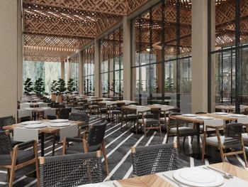 Отель новый, понравился дизайн отеля в эко-стиле, огромная территория, множество локаций, где можно отдохнуть вдвоем в тишине, весело провести время с детьми, большой аквапарк
