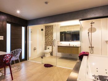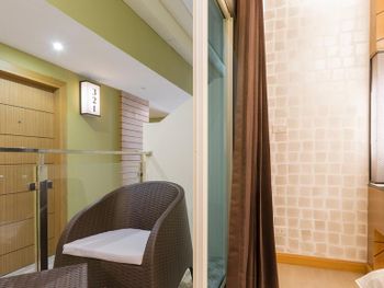 При бронировании было указано, что номер без окна! Меня это очень смущало, но оказалось, что окно есть, открывается, за ним маленький балкончик со столиком и стульями, просто он упирается в стену соседнего корпуса. Очень приватное и вполне себе комфортно!! Локация отеля великолепная и номер отличный!