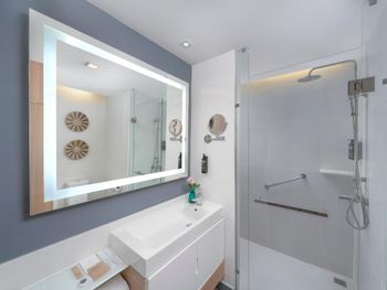 В номере очень шумно работал кондиционер.Не было халата и зонта в номере.При заселении не дали приветственный напиток,пришлось самой просить воды.