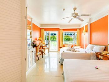 Хороший и тихий отель для семейного отдыха. Пляж через дорогу, рядом есть рестораны. Номера староваты, но сам отель уютный, очень просторные номера, кровати удобные. Завтраки разнообразные, иногда была каша, всегда есть сыр, что редкость в Таиланде. У бассейна, не смотря на полную загрузку отеля , всегда были свободные лежаки. Полотенца для пляжа в свободном доступе (можно менять в течение дня), есть пляжная сумка, халаты, питьевая вода ставится ежедневно. Не смотря на старенькую мебель и сантехнику здесь приятно находиться.