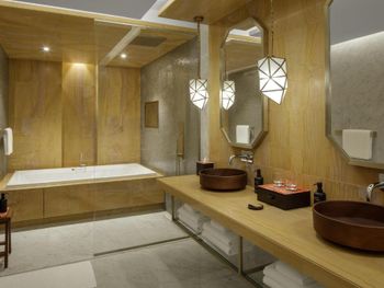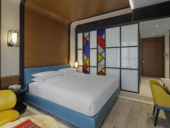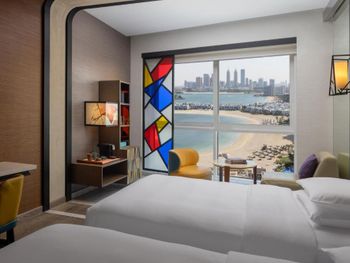 гостям отеля Andaz Dubai The Palm by Hyatt предлагаются роскошные современные номера с потрясающим дизайном и