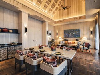 Красивый отель с очень большой зеленной территорией и красивым приватным пляжем. Номера большие и с хорошим дизайном, материалы качественные , номера новые. Бассейны не очень большие и не совсем удобные . Много полотенец и хороший банный набор. Доставка еды в номер немного завышает ценник , ресторан на пляже мне показался безвкусным я заказывал оттуда в номер и еда была абсолютно из не сочетаемых вкусов и вкусы были неприятными, хотя, выглядело это все красиво. Так же я лично решил сходить туда и поужинать и так же остался в расстроенных чувствах потому что еда абсолютно невкусная . Она свежая , красивая подача, но вкуса нет . Сам пляж мне понравился очень сильно , но всегда места были заняты. В новогоднюю ночь они закрыли доступ на пляж и мне пришлось покупать билет за 40$ чтобы пройти на свой пляж ??? это абсурдно. Я уже заплатил 1000$ за одну ночь в этом отеле и был я несколько дней. Так что странно вымогать с меня еще 40$ за пляж.
