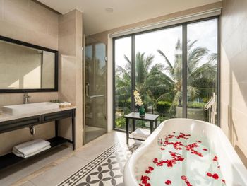 В Andochine Villas Resort & Spa Phu Quoc - All Villas with Private Pool в номерах имеется кондиционер, сейф и телевизор с плоским экраном со спутниковыми каналами. Среди прочих удобств — гостиная зона, кухня, обеденная зона и собственная ванная комната с биде, бесплатными туалетно-косметическими принадлежностями и феном. Помимо собственной ванной комнаты с душем и тапочками, в некоторых номерах в Andochine Villas Resort & Spa Phu Quoc - All Villas with Private Pool из окон открывается вид на море. Гостям Andochine Villas Resort & Spa Phu Quoc - All Villas with Private Pool предоставляются постельное белье и полотенца.