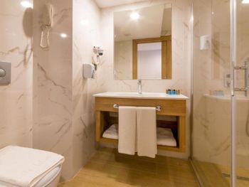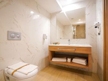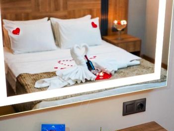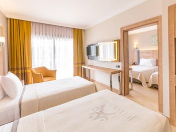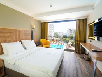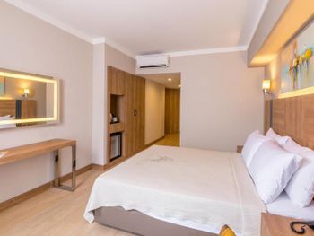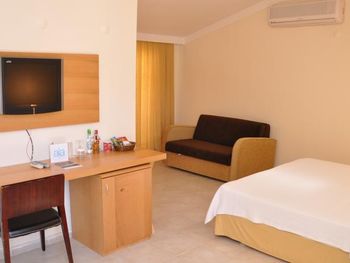Большой номер, чистота, вкусное питание. Но вот заявленные халаты пришлось прям "просить". Не было и туалетных принадлежностей, кроме жидкого мыла. А гель в душевой кабине был объявлен и шампунем. Кондиционера для волос не было, "не положено". И накрываться, кроме покрывала на кровать, было нечем. Не стесняйтесь, спрашивайте, нам сразу в первый же вечер дали пледы. В первую ночь нам не подошло расположение номера, было шумно. Но по просьбе на 2- й день поменяли на более тихий номер, за что мы были благодарны дежурному администратору, милой девушке. Очень понравилось питание. У нас был завтрак + ужин. Разнообразно и вкусно!!! Особенно порадовало присутствие рыбы каждый ужин (кроме 2-3 видов мясных блюд). Выпечка - тоже сказка. Бассейн в отеле - тоже приятный бонус. Не во всяких отелях в Мармарисе есть бассейн. И ещё пользовались спа- сауна неплохая. В целом нам очень понравилось, несмотря на мелочи. Будем ещё останавливаться, если приедем в Мармарис.