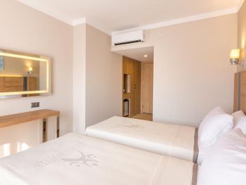 Расположение супер, в 3х минутах от моря, через дорогу мигрос. Из номера отличный вид на горы. Просторные номера, чисто, уютно. Очень приветливый персонал. Хорошие насыщенные завтраки. Брали ночь с завтраками и одну ночь полупансион: завтрак и ужин