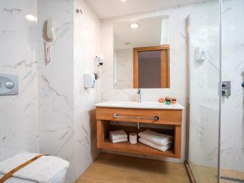 Первое - это мы написали отелю просьбу встретить в аэропорту, приезжаем в 2 часа ночи, нас никто не встретил. Слава богам, что был автобус и мы сообразили уехать на нем. Отель нам сказал, что написал согласие ошибочно и трансфера у них нет. Окееееей! Отвратительно убирались! Грязь под ногами, постельное - только после просьбы, полотенца, которые мы специально положили на пол, аккуратно подняли и сложили, гель для душа пополняли только если попросишь На респеции все плохо говорят по английски Если вам нужно работать в путешествии - интернет ооооочень слабый и постоянно то отваливается, то просто не работает Может, конечно, у нас был такой номер, с дверью в соседний, но мы слышали всеееее, что происходит, и когда соседи просыпались в 6 утра, мы просыпались вместе с ними.... Ну и в целом - на фото отель выглядит сильно более привлекательно, чем в жизни.