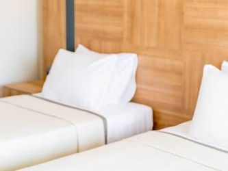 Очень твердый матрац, как будто лежишь на полу, разницы никакой. Подушки не удобные. Одеяла нет, пододеяльника нет! Вместо пододеяльника лежит грубая неприятная тряпка. В такой кровати можно спать только если очень устал и в одежде! Комфорта нет! Завтрак скудный.