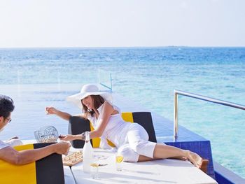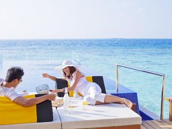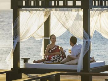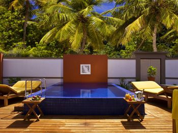 На некоторых пляжных виллах обустроены отдельные садовые террасы с бассейном. Все пляжные виллы оснащены полным спектром современных удобств. В распоряжении гостей телевизор и тропический душ на открытом воздухе. Предоставляются принадлежности для чая/кофе, электрический чайник, а также пляжные и домашние тапочки и халаты. Все виллы In-Ocean находятся у домашнего рифа за пределами острова. На каждой из них оборудован панорамный бассейн. Виллы In-Ocean отличаются большой площадью. С территории всех вилл можно напрямую выйти к пляжу и океану. На всем острове работает Wi-Fi.