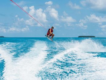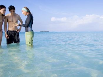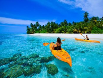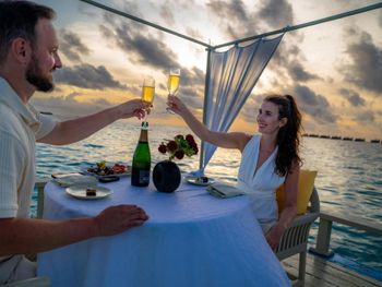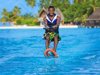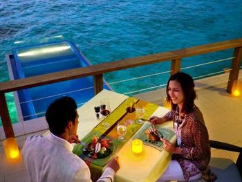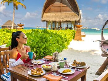 Водные вилы и хороший домашний риф. Мы видели акул, черепах, мант и тд..Удачное расположение острова. Также здесь очень хорошее обслуживание. Все официанты очень приветливы. В целом всё было шикарно.