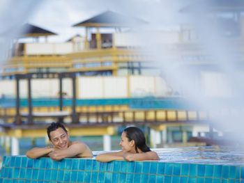 Отель на 4+ Попросила купить маленький надувной бассейн для ребёнка, привезли на следующий день, очень благодарена, персонал очень понравился. Еда есть все необходимое, тематические ужины, в стиле Китая, Италии и т.д. неплохие десерты. Вечером кино, караоке и др программы.. Если вы не любите сильную жару лучше лететь в октябре или ноябре, будет более облочно и дожди.