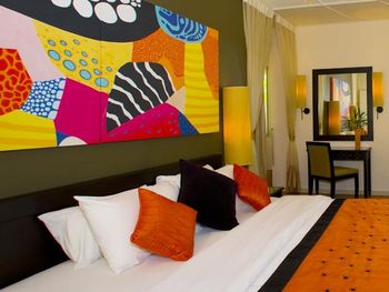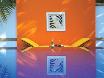 Очень удачное сочетание цветовых решений в оформление курорта: оранжевый и синий цвет, дают потрясающие снимки. Но на удачном дизайне, пожалуй заканчиваются плюсы этого отеля. Ещё можно отметить наличие корпоративного духа у команды отеля, которые пытаются нивелировать недостатки, достаточно хорошим обслуживанием. И есть ещё одна интересная фишка, которую было бы неплохо взять другим подобным отелям на вооружение: приготовление улова, если таковой будет на вашей рыбалке, ничего не стоит вам - эта опция входит в стоимость рыбалки.