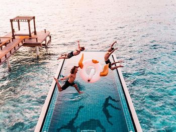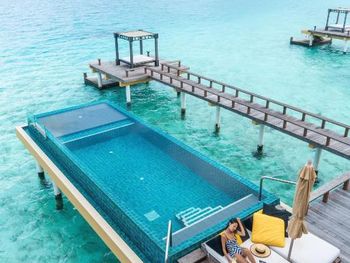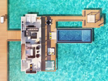 Водные виллы со вторым этажом и бассейном, прекрасный домашний риф
