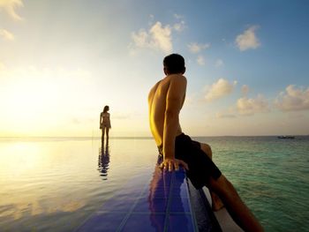 Водные виллы - это просто восторг! Огромная вилла, бассейн до горизонта, не очень понятно зачем нужна веранда на крыше, но даже и она тоже есть :) За неделю только один раз прокатился на маршрутке до острова, ласты с маской взять, больше необходимости не возникало. Кормежка вкусная, но порции небольшие, если брать HB то можно остаться голодным, лучше полный пансион.
