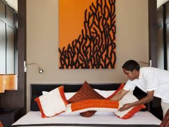 Меню не меняется, всегда одно и то же, фруктов было 3-4 вида, почти все было невкусно. Виллы на острове требуют уже реставрации, все было уже довольно потрёпанное, старое, все это не соответсвует 5 звёздам. Постоянно путали заказы, либо приносили через полтора часа ожидания, все время выключался свет в 169 вилле, и временами не работал wi if, Так же нас закрыли на карантин, так как у одного из нас показал позитивный тест на Ковид-19, в Итоге мы были там почти 20 дней. Ближе к концу карантина пришли и сказали что продлят ещё на 14 дней карантин, так как я гуляла по пляжу не на своей территории (пляж практически всегда пустой). Думаю что отель не пользуется популярностью, потому они хотели оставить нас заново на карантин, так как за время проживания на карантине оплачивает сам гость. После карантина сделали тест только одному человеку, второму лишь дали справку о 14 днях изоляции, убедив в том что этого для посадки на борт самолёта достаточно, (в отеле работает Киргизка Алина, русскоговорящая) я несколько раз просила Алину уточнить, чтобы не возникло проблем в аэропорту, Алина уверила что спросила у врача и у своего руководства, и что это более чем достаточно и пцр тест не нужен! Я переспрашивала у неё очень много раз, но что вы думаете, в аэропорту нас без пцр не пустили на борт самолёта! Больше низачто не вернусь в этот отель! Отдых был испорчен, а сам отель лишь вызвал отвращение. Персонал все время все забывает, что заказы, что лекарства, приносили лишь на 2-3 раз, только после напоминания. Остров очень маленький, виллы на воде расположены далеко, к ним добираться только на лодке. На карантине были лишь мы, хотя нас уверили что персонал кто нас обслуживал тоже на карантине, это оказалось неправдой, изолировали лишь нас. К тому же персонал тоже нарушает санитарные нормы, носят маски на подбородке, либо их нет( не у всех конечно), персонал который убирает виллы тоже убираются в вашей вилле без масок. Никому не советую!