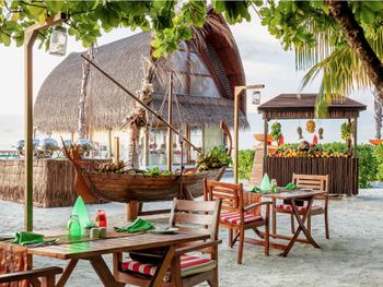Это отзыв-предостережение, для людей бывавших на Мальдивах, знающих качество отделки и оснащения номеров в 5-ти звёздных сетевых отелях, для людей плававших на домашних рифах, и не понаслышке знающих какой он, мальдивский песок. Те кто впервые приедет на Мальдивы, и сразу сюда на All, то просто не поймут того, что есть места лучше. Если этот отель, и соответствовал когда-то уровню 5 звёзд, то это было уже давно, и без реновации не обойтись: устала не только техника, но и мебель, и сантехника. Кондиционер, в режиме "POWER", на минимальной температуре охлаждения, дул круглосуточно, и охлаждал виллу только под утро, когда долго не открывались двери на улицу. Сломано и/или ушатано всё что можно расшатать, начиная от смесителей в душе, заканчивая шезлонгами на пляже. Но если виллы с их начинкой можно реновировать, то риф на отмели окружающей отель, воссоздать невозможно, как и сделать песок белым и мелким, из той субстанции колотых кораллов, которая окружает всю береговую линию. Вот где начинаешь понимать, почему отель не даёт других вариантов размещения, кроме All Inclusive. Во время нашего пребывания на острове, тоже были такие гости, которые видели только бар и бассейн рядом с ним, и им этого было вполне достаточно... В общем шестая поездка на Мальдивы, оказалась провальной, поэтому хочется пожелать другим, взвесить плюсы и минусы, прежде чем ехать в этот отель, до того, как его приведут в порядок. Если конечно, вам не важен риф и песок.