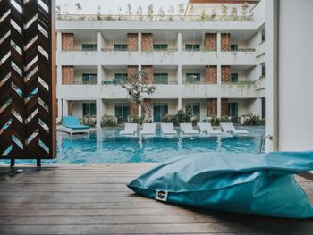 Всю территорию отеля занимает бассейн. Мы жили на втором этаже и я очень рада, что не выбрала номер с выходом к бассейну, так как балкона в тех номерах по сути нет и посидеть там негде - один мягкий пуфик и всё. А плавающие люди в бассейне будут иметь возможность заглядывать к вам в номер, так что ,если выберете такой номер, закрывайте шторы!