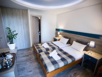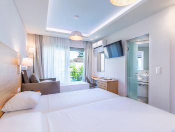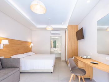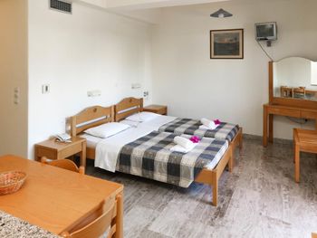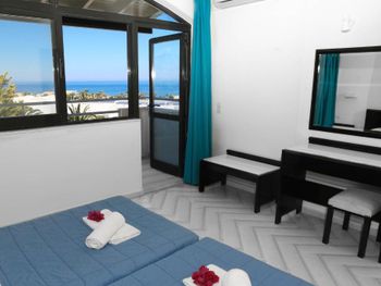 Отель небольшой но уютный, много зелени, номера просторные , вид с балкона шикарный на море. Полотенца каждый день меняли, убирались в целом хорошо но почему то раковину и унитаз в ванной ни разу за 10 дней не мыли. Пляжные полотенца бесплатно не дают стоит 2 €. Рядом несколько пляжей на выбор, район немного отдаленный от все й инфраструктуры, но если есть машина то это не проблема. Рядом маленький супермаркет, прокат авто, ресторан и агентство где можно заказать экскурсии, в них работаю русскоговорящие работники, осталось не приятное впечатление от женщины которая сидит в пункте проката авто, мы у нее брали авто на 3 дня, а 4 день сказали что еще не знаем будем ли брать подумаем и должны были накануне вечером сказать свой ответ, но в тот день мы приехали из экскурсии поздно и ее там не было видимо закончился рабочий день и мы решили сказать утром следующего дня что брать не будем, на следующий день утром пришли сказать ей об этом а она начала ругаться и сказала что отказаться нельзя, вобщем много услышали от нее негатива, очень было это не приятно, а так в целом все было хорошо, отдохнули отлично, персонал отеля хороший особенно Лукас, всегда готов был помочь. Спасибо большое. Надеюсь вернемся еще.