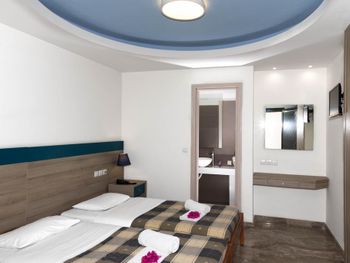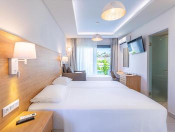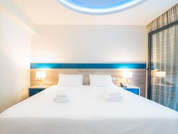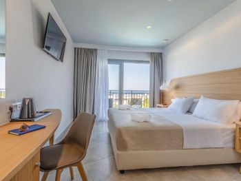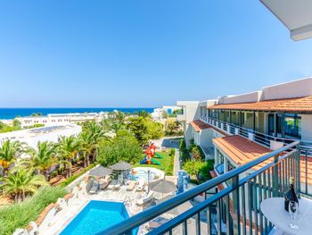 Прекрасный вид на море, бассейн, хорошмй завтрак. Рядом(5 минут пешком) есть "частный" пляж для большого отеля где можно свободно купаться. Мы жили в апартаментах с 2 комнатами и кондишка была в двух помещениях и ей можно было пользоваться при открытых окнах. На удивление нормальный wifi.