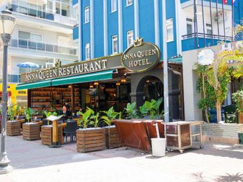 Anna Queen Hotel — это отель в городе Аланья, в 200 м от такой достопримечательности, как Пляж Клеопатра. Из окон открывается вид на город, среди удобств есть бар. В распоряжении гостей отеля с 3 звездами — сезонный открытый бассейн, а также номера с кондиционером, бесплатным Wi-Fi и собственной ванной комнатой. В распоряжении гостей доставка еды и напитков и круглосуточная стойка регистрации.