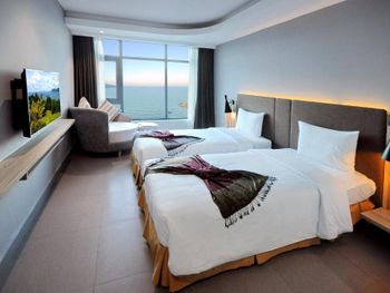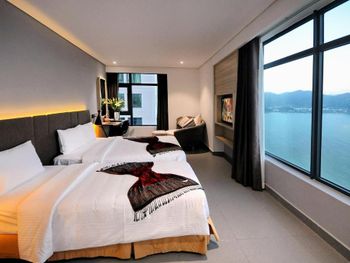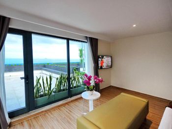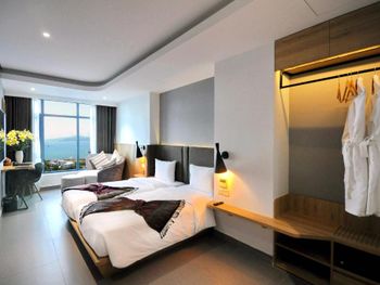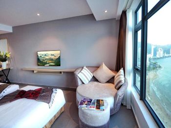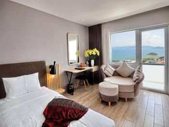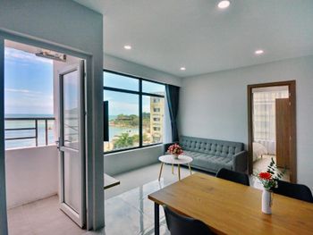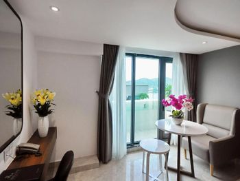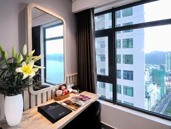 Прекрасный вид из окна! Расположение отличное, возле моря, рядом много магазинов и кафе на любой вкус. До центра не близко, но мы с удовольствием гуляли по набережной, можно взять такси или байк, тогда всё становится намного ближе! Номера чистые, хорошее бельё. Много полотенец, чистые, но сильно потрёпанные. Персонал приветливый, но толком не помогает если есть вопросы к номеру.